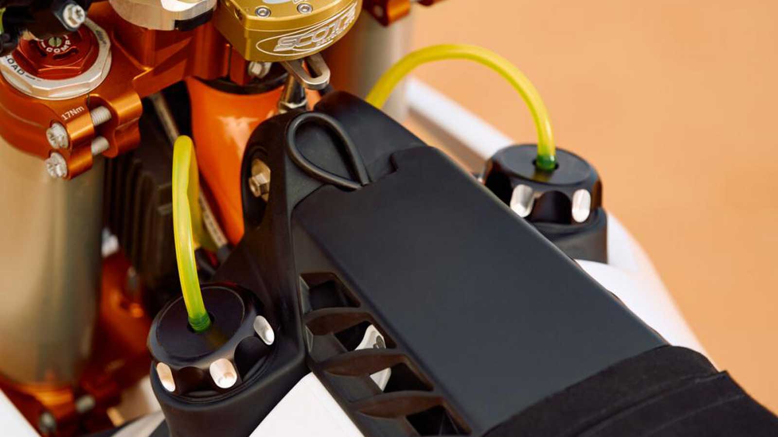 Επίσης, η KTM 450 Rally Replica του 2025 θα είναι εφοδιασμένη με 3 ντεπόζιτα και δύο ξεχωριστές αντλίες βενζίνης που μπορούν να λειτουργούν αυτόνομα, τραβώντας βενζίνη είτε από τα ντεπόζιτα των 9 και 9,5 λίτρων είτε από το πίσω ντεπόζιτο των 16 λίτρων, το οποίο μάλιστα λειτουργεί και ως υποπλαίσιο. Η συνολική λοιπόν χωρητικότητα καυσίμου της KTM 450 Rally Replica φτάνει τα 34,5 λίτρα! Το κομμάτι των αναρτήσεων αναλαμβάνει φυσικά η WP, με ένα πιρούνι Xact Pro 7548 48mm και ένα αμορτισέρ Xact Pro 7750, ενώ μπροστά βρίσκουμε και ένα σταμπιλιζατέρ της SCOTTS.