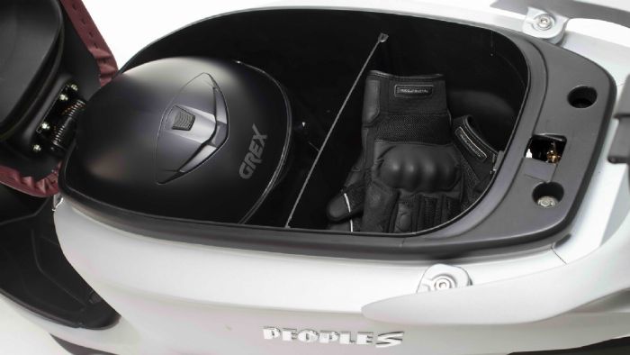 Το πλαίσιο των νέων People S είναι κατασκευασμένο για να προσφέρει την απαιτούμενη στιβαρότητα και η σχεδίασή του επιτρέπει την τοποθέτηση του δοχείου καυσίμου των 6,2 λίτρων κάτω από το δάπεδο. Η κίνηση αυτή χαμηλώνει αισθητά το κέντρο βάρους των scooter, με ευεργετικό αποτέλεσμα στην ευελιξία και στον όλο χειρισμό τους. To πατενταρισμένο υπο-πλαίσιο στήριξης του κινητήρα -οριζόντιας διάταξης- υπόσχεται βελτιωμένη σταθερότητα στις υψηλές ταχύτητες κίνησης. Ο τροχός μπροστά παραμένει στις 16 ίντσες, ενώ ο αντίστοιχος πίσω είναι στις 14 ίντσες προκειμένου να εξοικονομηθεί ο απαραίτητος χώρος κάτω από τη σέλα, όπου μπορούν να φιλοξενηθούν ένα full face κράνος και αρκετά άλλα αντικείμενα. Υπάρχει μάλιστα και αφαιρούμενο διαχωριστικό, που αφενός επιτρέπει να μεταβάλλεται ο χώρος αυτός ανάλογα με τις εκάστοτε απαιτήσεις του αναβάτη και αφετέρου εμποδίζει την μετακίνησή των αντικειμένων που φιλοξενούνται κάτω από τη σέλα. Ο χώρος φωτίζεται από ένα φωτιστικό LED και διαθέτει μια δεύτερη θύρα USB (η πρώτη βρίσκεται στο τιμόνι) για φόρτιση μεγαλύτερων ηλεκτρονικών συσκευών. Σημαντικό στοιχείο η διατήρηση του επίπεδου πατώματος, που συνδυαστικά με το υπάρχον άγκιστρο χειραποσκευών αυξάνει σημαντικά τη δυνατότητα μεταφοράς αντικειμένων.
