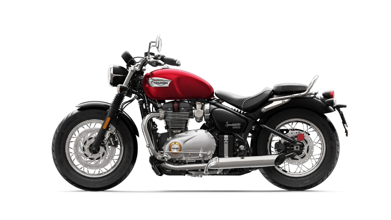 Όπως και το Bobber, διαθέτει επιλογές για την χαρτογράφηση, αλλά και cruise control. Τα μαρσπιέ είναι πολύ μπροστά τοποθετημένα, με τα άκρα του τιμονιού να γυρίζουν προς τα πίσω για μια πιο cruising θέση οδήγησης, αλλά στον έξτρα εξοπλισμό υπάρχουν και «συμβατικά» μαρσπιέ, που τοποθετούνται στο κέντρο της μοτοσυκλέτας. Ο προβολέας είναι τεχνολογίας LED και έχει ενσωματωμένα φώτα ημέρας, ενώ η χωρητικότητα του ρεζερβουάρ έχει μεγαλώσει στα 12 λίτρα. Η Triumph λέει ότι το Speedmaster απευθύνεται σε όσους αρέσει το Τ120, αλλά θέλουν περισσότερες ταξιδιωτικές ικανότητες και αισθητική cruiser ή απλά ένα Bobber με πιο Βρετανικό στυλ.