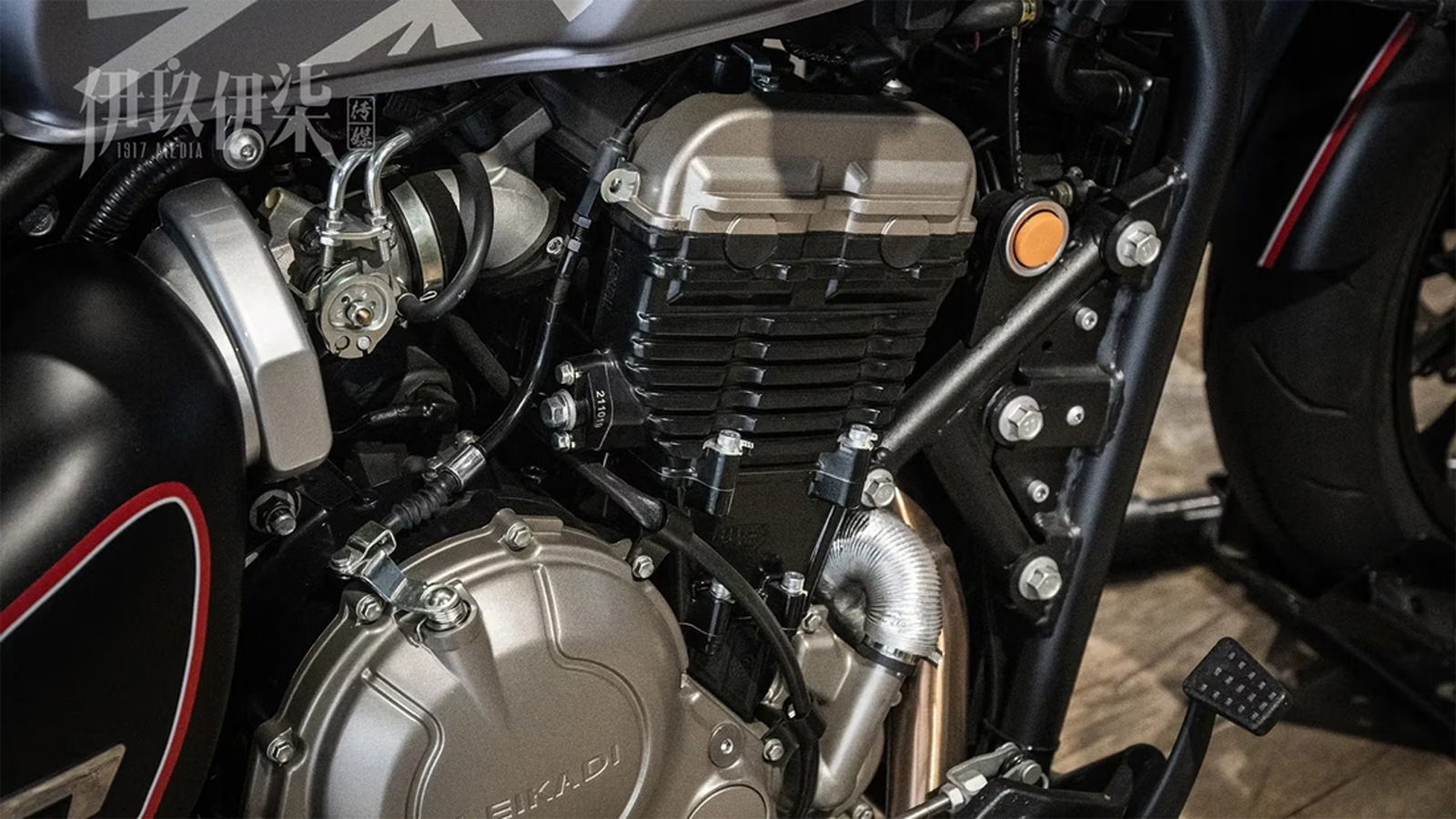 Όσον αφορά τον κινητήρα όμως, το RX7 είναι αρκετά μικρότερο σε σχέση με το Triumph. Στο ατσάλινο σωληνωτό πλαίσιό του βρίσκεται ένας δικύλινδρος εν σειρά κινητήρας που σύμφωνα με τα μέσα της Κίνας προέρχεται από την CFMOTO. Στο RX7 αποδίδει 70 άλογα και 62 Nm ροπής, νούμερα αρκετά καλά για τα κυβικά του. Το βάρος της όμως κάνει την ζυγαριά να "αναστενάξει", αφού τα 230 κιλά της, είναι αρκετά για μία μοτοσυκλέτα μεσαίας κατηγορίας και ένα μέρος αυτών αποδίδεται στο μεγάλο ελαστικό πίσω και ό,τι αυτό προϋποθέτει (μεγαλύτερη ζάντα, πιο ογκώδης κατασκευή ψαλιδιού κ.ο.κ.)