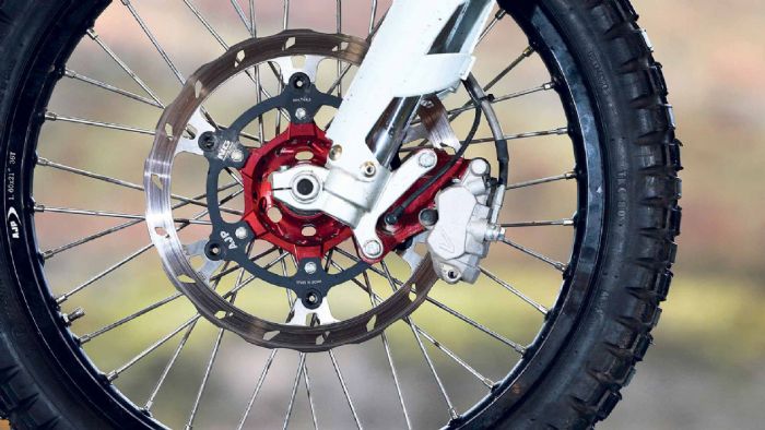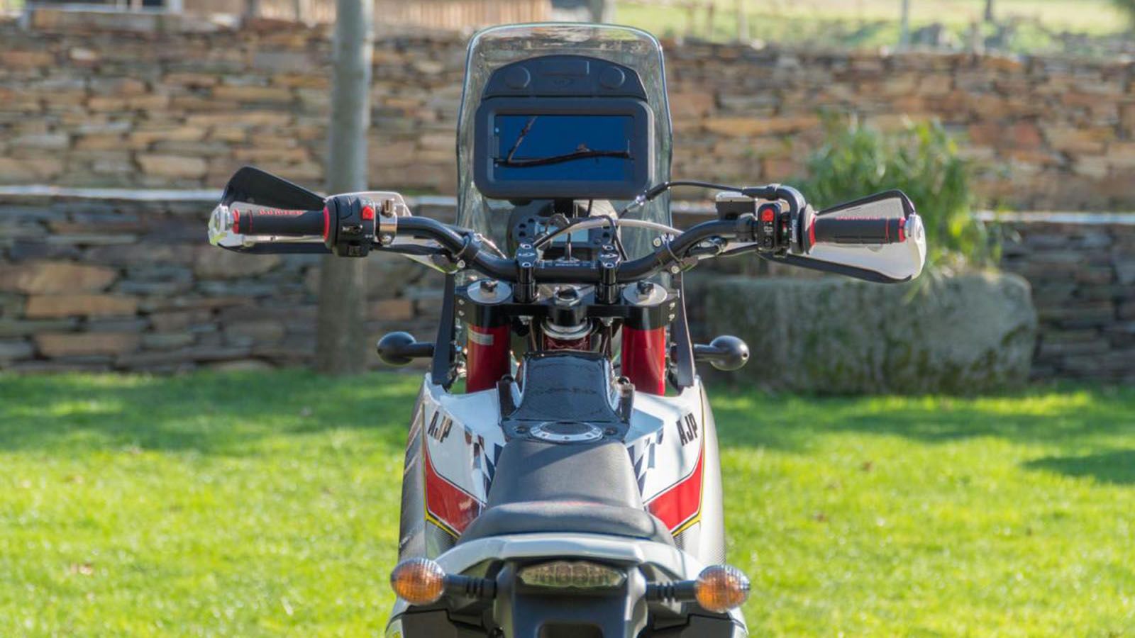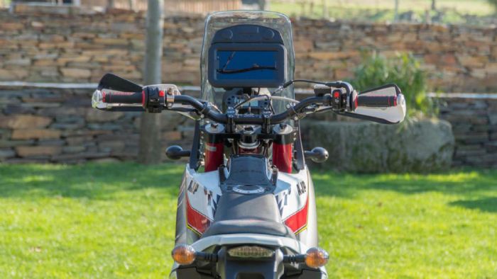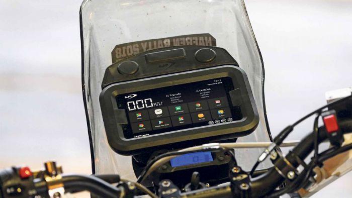 Κάτι ακόμα που κεντρίζει την προσοχή, είναι το μεγάλο tablet της Samsung (Galaxy 6) που είναι τοποθετημένο πάνω από τον πίνακα οργάνων: Φυσικά, για να χρησιμοποιηθεί ως εργαλείο πλοήγησης και roadbook, αλλά και όχι μόνο! Η μοτοσυκλέτα διαθέτει ρεζερβουάρ 17 λίτρων, το οποίο εκτείνεται μέχρι και κάτω από την σέλα του αναβάτη, υποσχόμενο μεγάλη αυτονομία για το μονοκύλινδρο όχημα.