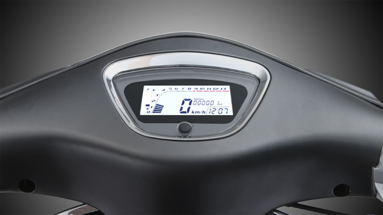 H LCD oθόνη του RAVIDA 125 προβάλλει όλες τις απαραίτητες πληροφορίες με ευανάγνωστες ενδείξεις, διατηρώντας τη συνολική κομψότητα στην οπτική του αναβάτη, ενώ τη χρηστική πλευρά του χαρακτήρα του ενισχύουν τόσο ο πρακτικός γάντζος πίσω από την ποδιά για τη μεταφορά αποσκευών και το ντουλαπάκι που κλειδώνει, όσο και η θύρα φόρτισης USB, στην αριστερή πλευρά κάτω από το τιμόνι. Η πολύ κομψή και όμορφη αλουμινένια σχάρα συμπληρώνει τις μεγάλες δυνατότητες μεταφοράς του RAVIDA, χωρίς να αφαιρεί πόντους από το ιδιαίτερο στιλ του scooter.