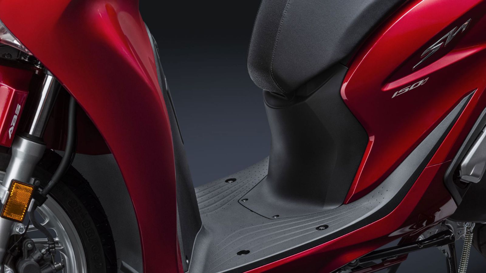 Το ανασχεδιασμένο πλαίσιο απελευθερώνει πρόσθετο και ακόμα πιο ωφέλιμο αποθηκευτικό χώρο (με ενσωμάτωση θύρας USB) και η βελτιστοποίηση της πίσω ανάρτησης αυξάνει την άνεση. Το πολυτελές νέο σώμα και το στιλάτο, χαρακτηριστικό εμπρός τμήμα αναδεικνύουν το SH150i. Όλα τα φώτα είναι τεχνολογίας LED και υποστηρίζονται από ανανεωμένα όργανα LCD.