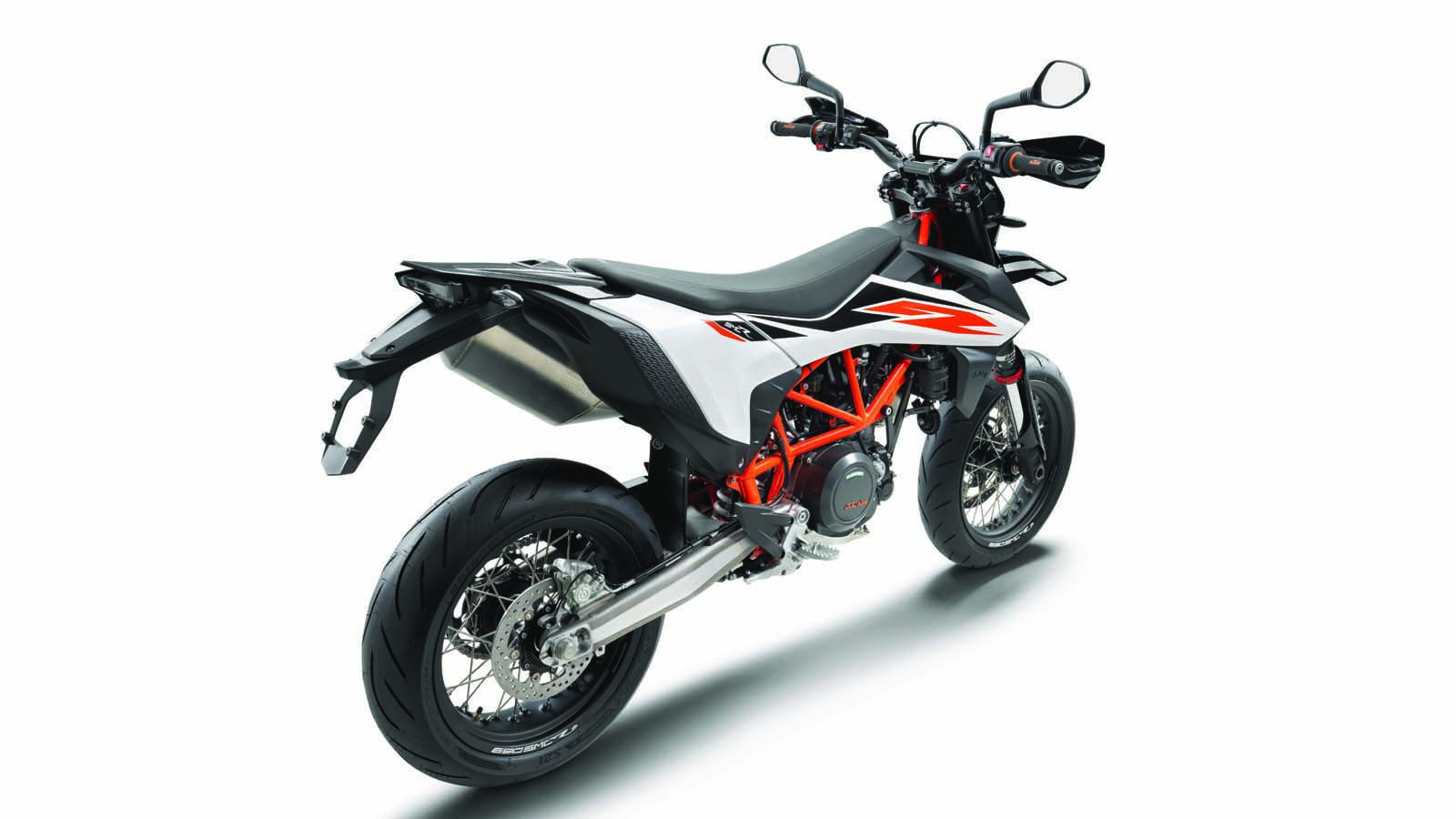 Εκεί που τα SMC και Enduro διαφέρουν είναι σε ανάρτηση και φρένα. Μπροστά, η KTM χρησιμοποιεί το πλήρως ρυθμιζόμενο WP APEX 48 χιλιοστών , το οποίο έχει ελατήρια σε κάθε καλάμι, αλλά ξεχωρίζει τα καθήκοντα απόσβεσης, με απόσβεση στα δεξιά και συμπίεση στα αριστερά και πίσω αμορτισέρ μ ε μοχλικό, πλήρως ρυθμιζόμενο. Την πέδηση έχει αναλάβει η Brembo, με μια ακτινικά τοποθετημένη δαγκάνα τεσσάρων εμβόλων στον μπροστινό τροχό, που συνδυάζεται με έναν δίσκο 320 χιλιοστών. Τα ελαστικά είναι από την Bridgestone, της σειράς Battlax S21.