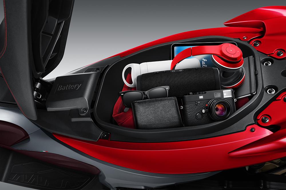 Στον βασικό εξοπλισμό συναντάμε φωτιστικά σώματα τεχνολογίας full-LED, μία έγχρωμη οθόνη LCD, σύστημα keyless και θύρα USB, κατάλληλη για φόρτιση. Για τον αποθηκευτικό χώρο κάτω από τη σέλα δε δίνονται πληροφορίες αλλά πιθανών να χωράει με άνεση ένα κράνος.