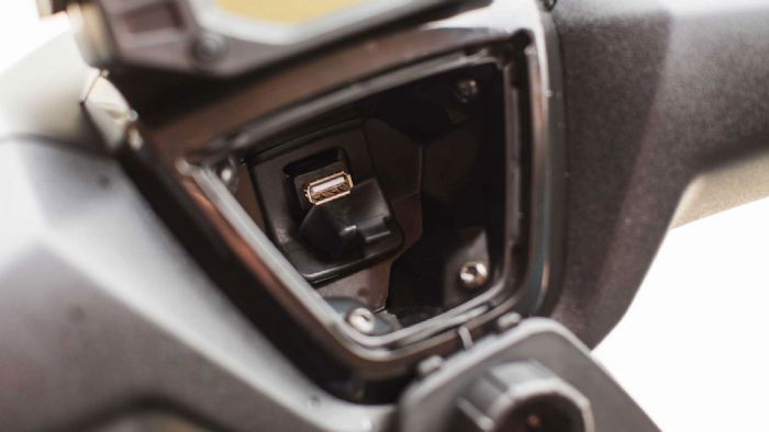 Η μοντέρνα σχεδίαση συμπληρώνεται από μια μικρή LCD οθόνη, κάτω από την οποία υπάρχει ένα ντουλαπάκι με θύρα USB για φόρτιση συσκευών, ενώ έξτρα αποθηκευτικός χώρος υπάρχει κάτω από τη σέλα και χωρά ένα full face κράνος. Το βάρος του είναι 120 κιλά και πατάει σε τροχούς 13 ιντσών, που φορούν ελαστικά διαστάσεων 130/60-13 εμπρός και πίσω, ενώ το ρεζερβουάρ του έχει χωρητικότητα 8 λίτρα.