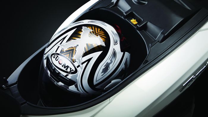 Κάτω από τη σέλα θα αποθηκεύσετε με άνεση ένα κράνος κλειστού τύπου.
