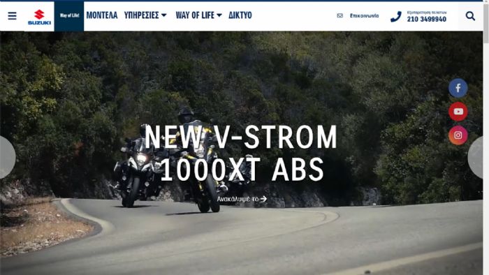 Εμπλουτισμένη με ένα νέο περιβάλλον χρήσης, με περισσότερες φωτογραφίες, επιλογές και δυνατότητες για τον επισκέπτη και την φιλοξενία της πλήρους γκάμας της μάρκας με όλα τα στοιχεία, η Suzuki παρουσιάζει την νέα ιστοσελίδα για τις μοτοσυκλέτες της, στην Ελλάδα. Μπορείτε να την δείτε κάνοντας κλικ στην παρακάω σύνδεση.