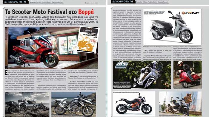 Επιπρόσθετα, σας ενημερώνουμε για το ντεμπούτο του Scooter Moto Festival στη Θεσσαλονίκη που θα πραγματοποιηθεί στις 20-21 Σεπτεμβρίου. Η γιορτή του δικύκλου ταξιδεύει βόρεια και εμείς σας πληροφορούμε για όλες τις τελευταίες εξελίξεις αλλά και τα events που θα λάβουν μέρος κατά τη διάρκεια του διήμερου.