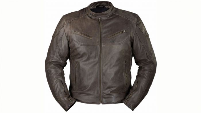 Είναι κατασκευασµένο από  γνήσιο δέρµα µοσχαριού 1.2mm. Είναι εξοπλισµένο µε πιστοποιηµένες προστασίες ώµου και αγκώνα, προστατευτικό πλάτης και έχει αφαιρούµενη θερµική επένδυση. Διαθέτει τέσσερις εξωτερικές τσέπες που κλείνουν µε φερµουάρ και τρείς εσωτερικές (οι δύο στην αφαιρούµενη επένδυση). Έχει προσαρµογή µε κουµπιά στον λαιµό, στη µέση και τους καρπούς.