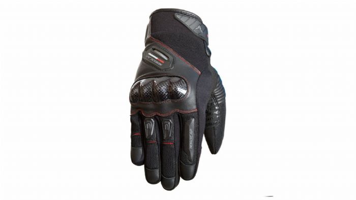 Γάντια κατασκευασµένα από δέρµα και ύφασµα µε σκληρά προστατευτικά από carbon στις αρθρώσεις.
