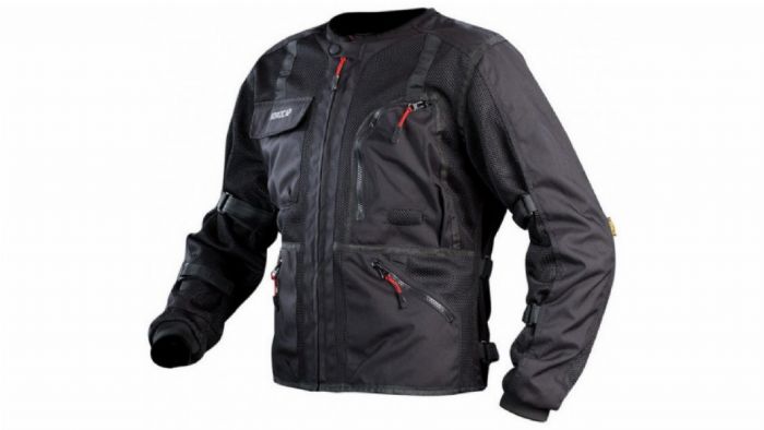 Είναι κατασκευασµένο από ύφασµα υψηλής αντοχής. Διαθέτει προστατευτικά CE σε ώµους και αγκώνες, προστασία πλάτης και 4 εξωτερικές τσέπες µπροστά για τα αντικείµενα που χρησιµοποιούνται πιο συχνά και µια µεγάλη τσέπη πίσω. Έχει επένδυση Μesh. Διαθέσιµο στο κατάστηµα Pols, www.pols.gr, τηλ.:800 111 7657