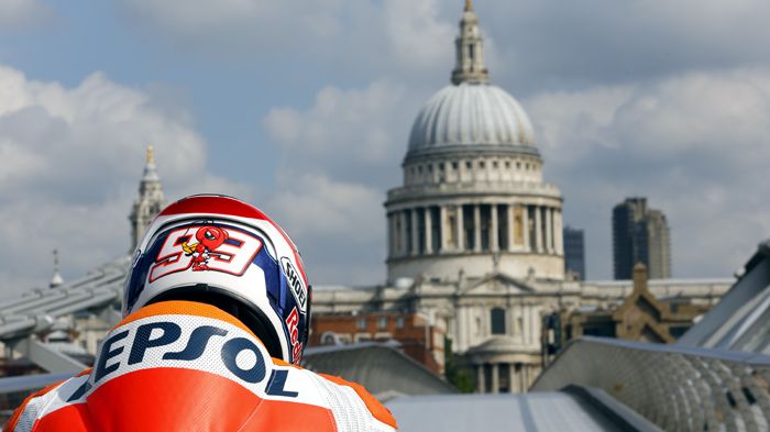 Σε μια εντυπωσιακή εκδήλωση, για την προώθηση του GP του Silverstone, ο Marc Marquez έγινε ο πρώτος άνθρωπος που διέσχισε την πεζογέφυρα Millennium Bridge στο Λονδίνο καβάλα σε μοτοσικλέτα!