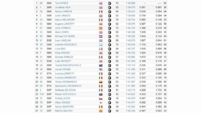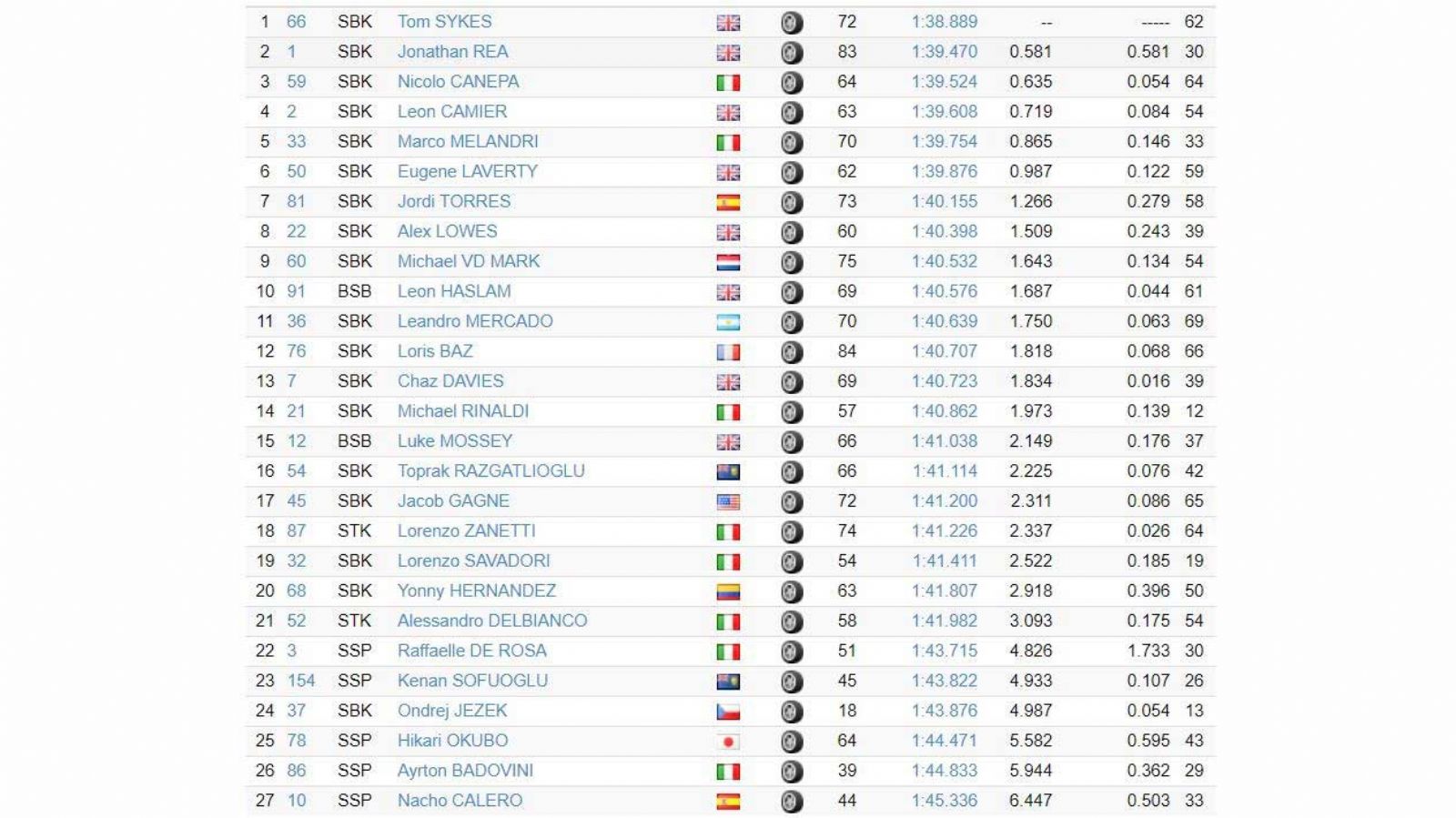 Σύμφωνα με πληροφορίες, ο Sykes πέτυχε τον καλύτερο χρόνο με ελαστικά χρονομετρημένων δοκιμαστικών, σταματώντας τα χρονόμετρα στο 1`38.889 τη στιγμή που ο ομόσταυλός του Jonathan Rea δοκίμαζε ελαστικά αγώνα και βρέθηκε 6 δέκατα πίσω του. Τρίτος ήταν ο δοκιμαστής της PATA Yamaha, Niccolo Canepa με τον Camier να ακολουθεί στην τέταρτη θέση και μάλιστα με το πακέτο ηλεκτρονικών της Cosworth, το οποίο θα αντικατασταθεί πριν την έναρξη του πρωταθλήματος με ένα της Magnetti Marelli.