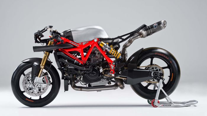 Με αυτά τα δεδομένα λοιπόν, δεν μας προξενεί εντύπωση το ότι στην Pierobone έχουν την συνήθεια να παίρνουν κινητήρες Ducati και με δομική βάση τα custom πλαίσια που κατασκευάζουν, να χτίζουν race ready μοτοσικλέτες.
