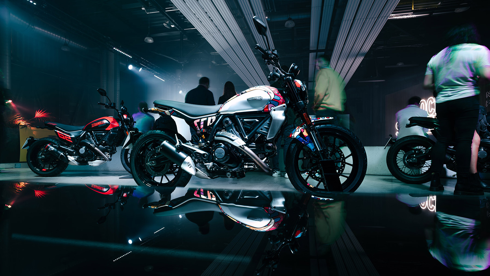 Σερφ σε κλειστό χώρο με τεχνητά κύματα στο Μόναχο και στη Μαδρίτη, παραστάσεις αυξημένης πραγματικότητας (όπου το πραγματικό περιβάλλον στο οποίο βρίσκεται ο θεατής "ενισχύεται" με προβολές πληροφοριών και εικονικών προσώπων ή χώρων) στο Μιλάνο, μουσικά σόου σε Λονδίνο και Παρίσι και τέλος λίγα παιχνίδια μίνι γκολφ στη Βιέννη. Στόχος της Ducati μέσω όλων αυτών ήταν να προωθήσει την πιο διασκεδαστική πλευρά που προσπαθεί να προσφέρει το νέο Scrambler.