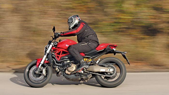 Το Monster είναι μια φανταστική μοτοσικλέτα για βόλτα στους δρόμους της πόλης, ενώ σαν γνήσιο Ducati πετάει τη σκούφια του και για στροφιλίκι. Το δυνατό μοτέρ που προέρχεται από το Hyperstrada, πέρα από φανταστικό ήχο έχει και εξαιρετική λειτουργία και παρουσιάζεται σαφώς βελτιωμένο. Ο ψεκασμός λειτουργεί άψογα με την απόκριση του γκαζιού να είναι γλυκιά και άμεση, οι στροφές ανεβαίνουν αστραπιαία και το Monster πετάγεται μπροστά με μένος αν το επιθυμεί ο αναβάτης του ή σουλατσάρει σταθερά με 20 χλμ./ώρα με το γκάζι να προφέρει άριστο έλεγχο στις μικρομετρικές ρυθμίσεις. Το Monster 821, όπως και οι πρόγονοί του, είναι σούπερ σταθερό με τις διαστάσεις του ανεστραμμένου πιρουνιού αλλά και την υπερ-ακαμψία που προσφέρει το πλαίσιο-κινητήρας να μην αφήνουν περαιτέρω χώρο για σχόλια. Αυτό που προσφέρει επιπλέον είναι η άνεση στις χαμηλές ταχύτητες χωρίς να είναι μαλακό. Απορροφά σωστά τις περισσότερες ανωμαλίες, δίνει καλή πληροφόρηση, ενώ το ίδιο κάνει και το αμορτισέρ δημιουργώντας έτσι έναν πολύ δυνατό συνδυασμό που τα καταφέρνει εξίσου καλά και σε γρήγορο ρυθμό. Έτσι, το Monster αφήνει τον αναβάτη του να το χαρεί μέσα στην πόλη και φυσικά στον επαρχιακό.