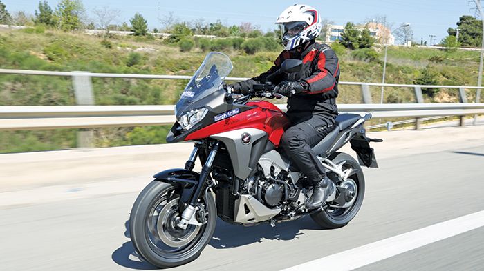 Η πρώτη κουμπώνει θετικά και ανεπαίσθητα στο σεμιναριακό κιβώτιο του Crossrunner, ο ελαφρώς βαρύς συμπλέκτης αφήνει σταδιακά τη δύναμη να περάσει στον τροχό και η μοτοσικλέτα της Honda ξεκινά ιδιαίτερα πολιτισμένα και ήσυχα.
