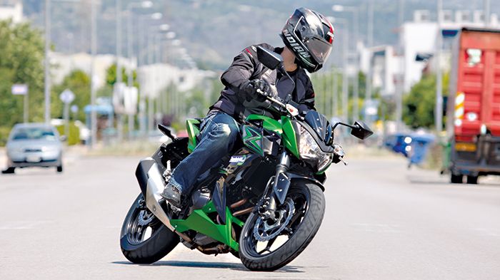 Πάνω στο «μικρό» Z300 το τελευταίο πράγμα που έρχεται στο μυαλό του αναβάτη είναι ότι οδηγεί μια μικρή μοτοσικλέτα. Το μεγάλο ρεζερβουάρ των 17 λίτρων γίνεται αισθητό ανάμεσα στα πόδια, τα πλαϊνά πλαστικά γεμίζουν όμορφα το οπτικό του πεδίο , όταν κοιτάζει κάτω και το λευκό στροφόμετρο, που κοκκινίζει στις 13.000 σ.α.λ., εντείνει την αίσθηση ότι εδώ έχουμε να κάνουμε με μια πολύκύλινδρη μοτοσικλέτα πολλών κυβικών εκατοστών. Αυτό βέβαια μέχρι να προσπαθήσετε να αλλάξετε κατεύθυνση, κάτι που το Ζ300 το κάνει με ιδιαίτερη προθυμία σχεδόν ακαριαία. Το Ζ300 τα καταφέρνει φυσικά εξαιρετικά και στον αυτοκινητόδρομο, όπου διατηρεί με ευκολία ταχύτητες της τάξης των 140 χλμ./ώρα χωρίς να κουράζει τον αναβάτη του. Σε συνδυασμό με την χαμηλή μέση κατανάλωση θα σας βγάλει εύκολα και γρήγορα και εκτός των ορίων της πόλης αφού δεν θα σταματήσετε για ανεφοδιασμό προτού περάσουν τουλάχιστον 250 χλμ. Και στον επαρχιακό θα περάσετε ευχάριστες στιγμές στη σέλα του Z300. Η μοτοσικλέτα ανταποκρίνεται πρόθυμα στις εντολές του αναβάτη, οι αναρτήσεις, αν και ελαφρώς ξερές σε λειτουργία, τα καταφέρνουν καλά υπό πίεση και η μοτοσικλέτα της Kawasaki δεν προβληματίζεται ούτε σε αυτό το πεδίο.