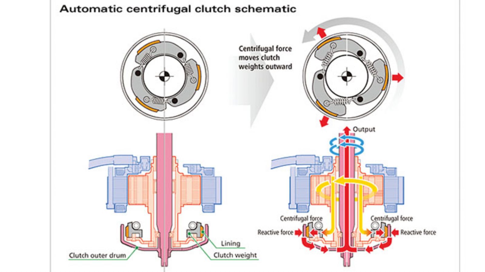 Στο διάγραμμα βλέπουμε την διαδρομή της ισχύος, μέσα από τον φυγοκεντρικό συμπλέκτη του σασμάν.