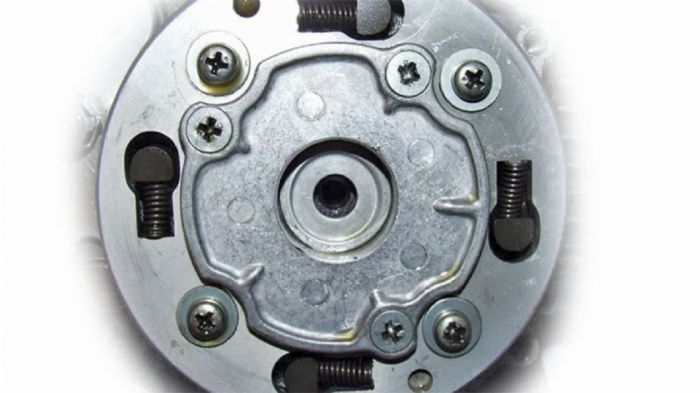 Η μεγάλη διαφορά σε σχέση με ένα κιβώτιο μοτοσικλέτας εντοπίζεται στον συμπλέκτη ο οποίος δεν είναι ο κλασικός μηχανικός: δεν τον απομονώνουμε δηλαδή εμείς τραβώντας κάποια μανέτα για να επιλέξουμε κάποια ταχύτητα. Ο συμπλέκτης στην περίπτωση του παπιού είναι φυγοκεντρικός, όπως ακριβώς δηλαδή είναι και ο συμπλέκτης που γνωρίζουμε από τα scooters.