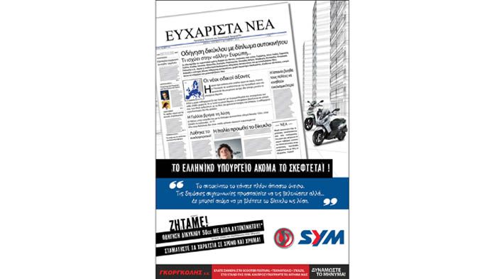 Η SYM θα συμμετάσχει στο Scooter Festival με παρεμβατικό σκοπό, συγκεντρώνοντας υπογραφές για το άιτημα της οδήγησης δικύκλου 50 κ.εκ. με δίπλωμα αυτοκινήτου.