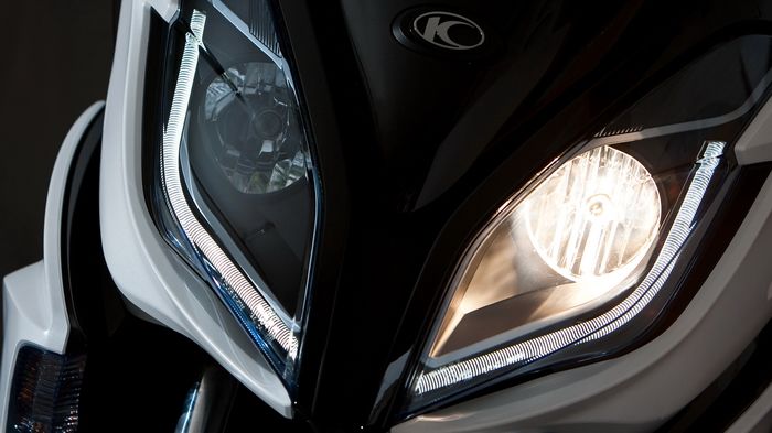 Σύμφωνα με την Kymco, το K-XCT 300 είναι το πρώτο scooter παραγωγής στον κόσμο με LED Guides στα φώτα.