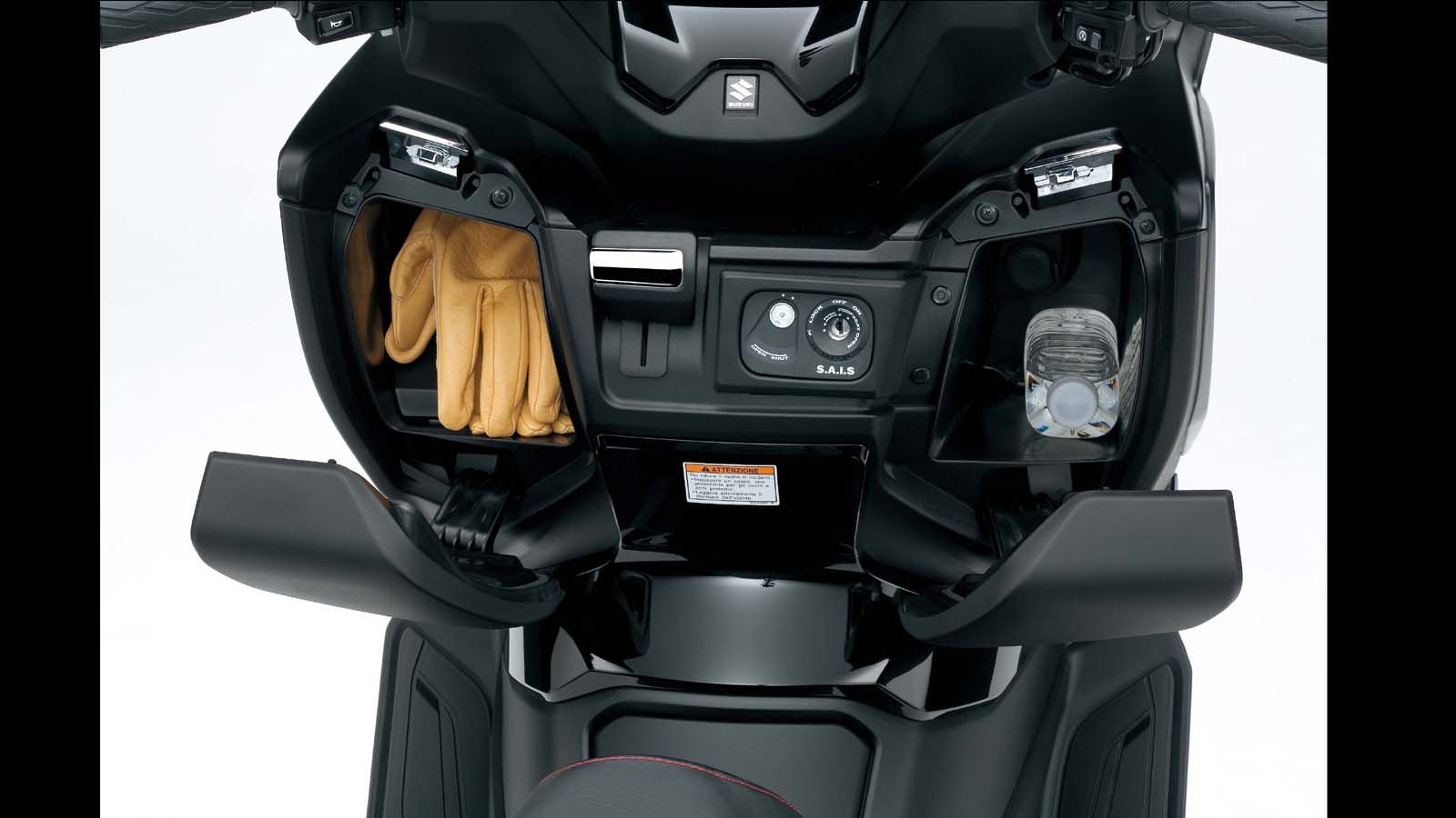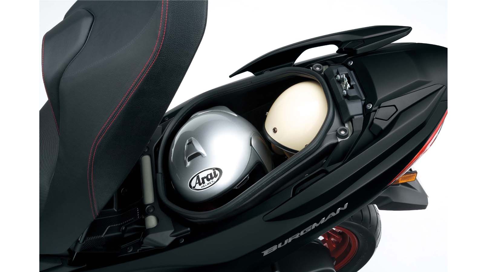 Το Burgman 400, κάνει εύκολη, τη ζωή του αναβάτη. Η ενισχυμένη διπλή σέλα, προσφέρει αυξημένη άνεση σε οδηγό και συνεπιβάτη, συνδυάζοντας το λεπτότερο σχήμα με παχύτερο μαξιλάρι, το οποίο ρυθμίζεται για να καλύψει κάθε τύπο αναβάτη. Ο αποθηκευτικό χώρος, κάτω από τη σέλα, φτάνει τα 42 λίτρα, αρκετός για να χωρέσει δύο κράνη, ενώ δύο ντουλαπάκια, στο εμπρός μέρος της ποδιάς προσφέρουν 6,3 λίτρα επιπλέον χώρου για μικροαντικείμενα, καθώς και μια υποδοχή 12V, για φόρτιση των ηλεκτρικών συσκευών. Το χειρόφρενο, μπορεί να αποδειχθεί χρήσιμο, όταν σταθμεύετε σε γλιστερό έδαφος. Η νέα ζελατίνα προσφέρει μεγαλύτερη ορατότητα και επαρκή κάλυψη από τον αέρα. Τα όργανα ελέγχου είναι αναλογικά, με μια μικρή ενδιάμεση οθόνη, να ενημερώνει για τις επιπλέον πληροφορίες.