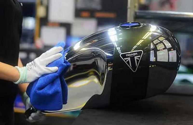 Το γυάλισμα αποτελεί τον παράγοντα κλειδί για την επίτευξη της απαιτούμενης ποιότητας. Ενώ σε ένα τυπικό ντεπόζιτο απαιτούνται περίπου 20 λεπτά γυαλίσματος πριν από το στάδιο της βαφής, στα επιχρωμιωμένα ντεπόζιτα αυτών των ειδικών εκδόσεων ο χρόνος γυαλίσματος φτάνει μέχρι και τις 3 ώρες - όλες τους στο χέρι, στο νέο εργαστήριο γυαλίσματος της Triumph, από μια ειδική ομάδα τεχνιτών.