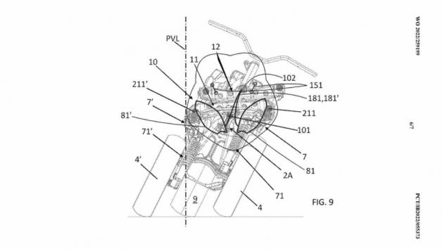 Όπως ήδη γνωρίζετε στο υπάρχον MP3 το εμπρός μέρος του φέρινγ πλαγιάζει μαζί με το υπόλοιπο scooter όταν ο αναβάτης στρίβει. Τα σχέδια όμως που είδαν το φώς της δημοσιότητας δείχνουν ότι η Piaggio ψάχνει τρόπο να το κάνει να μένει όρθιο και μπορεί στις εικόνες να φαίνεται ένα MP3, αλλά αναφέρεται ότι η συγκεκριμένη πατέντα θα μπορεί να εφαρμοστεί σε τρίτροχες και τετράτροχες μοτοσυκλέτες με δυο εμπρός τροχούς που στρίβουν και τουλάχιστον έναν κινητήριο τροχό πίσω. Στόχος είναι να επιτευχθεί καλύτερη αεροδυναμική απόδοση και σωστός φωτισμός του δρόμου από τον προβολέα του οχήματος, όταν αυτό βρίσκεται υπό κλίση.
