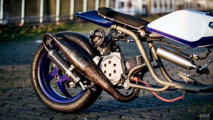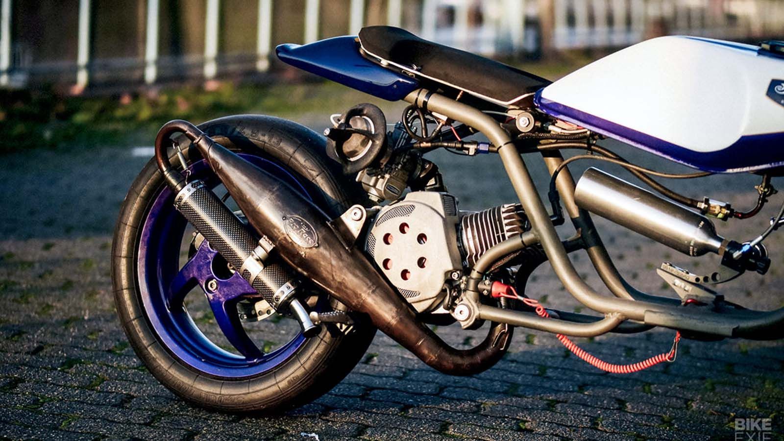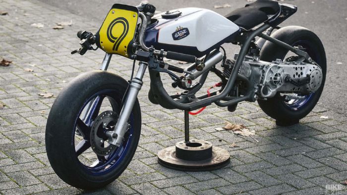 Ο Mirko Toth είχε ήδη στην κατοχή του το scooter που βλέπετε και είχε ήδη σκοπό, να το μετατρέψει σε ένα αγωνιστικό για drag κόντρες. Σε συνεργασία με τον Nick, o Mirko έκοψε το πλαίσιο του scooter και το προσάρμοσε στις ανάγκες του project. Το ρεζερβουάρ προήλθε από ένα άλλο project του Nick, ο οποίος αποφάσισε να το χρησιμοποιήσει σε αυτή την νέα δημιουργία.