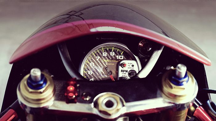 Μπροστινό από GSX-R κι ένα τεράστιο στροφόμετρο.