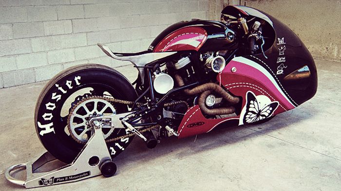 Η Plan B Motorcycles εδρεύει στην βόρεια Ιταλία και κατασκευάζει custom μοτοσυκλέτες. Προφανώς. Η συγκεκριμένη κατασκευή έγινε για λογαριασμό του ιδιοκτήτη της εταιρείας, Christian, ο οποίος ήθελε να πάει στο φεστιβάλ Glemseck 101 στη Γερμανία και να συμμετάσχει στον αγώνα τύπου dragster που αποτελεί κάθε χρόνο ένα από σημεία ενδιαφέροντος της συγκεκριμένης εκδήλωσης - λέμε "τύπου" γιατί ο αγώνας γίνεται άτυπα σε απόσταση 200 μέτρων, δηλαδή τη μισή από το παραδοσιακό 400άρι του κανονικού dragster.