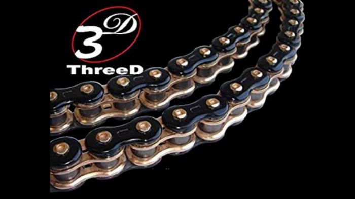 Οι αλυσίδες ThreeD θεωρούνται η ναυαρχίδα των αλυσίδων μοτοσυκλέτας, που θα ικανοποιήσει και τους πιο απαιτητικούς αναβάτες. Η υψηλή ακρίβεια κατά τη διαδικασία της παραγωγής οδηγεί σε ένα προϊόν υψηλής ποιότητας και αποτελεσματικότητας. Τις χαρακτηρίζουν η πρωτοποριακή σχεδίαση και οι κορυφαίες επιδόσεις τους, ενώ χρησιμοποιούν την τελευταία τεχνολογία Χ-Ring.