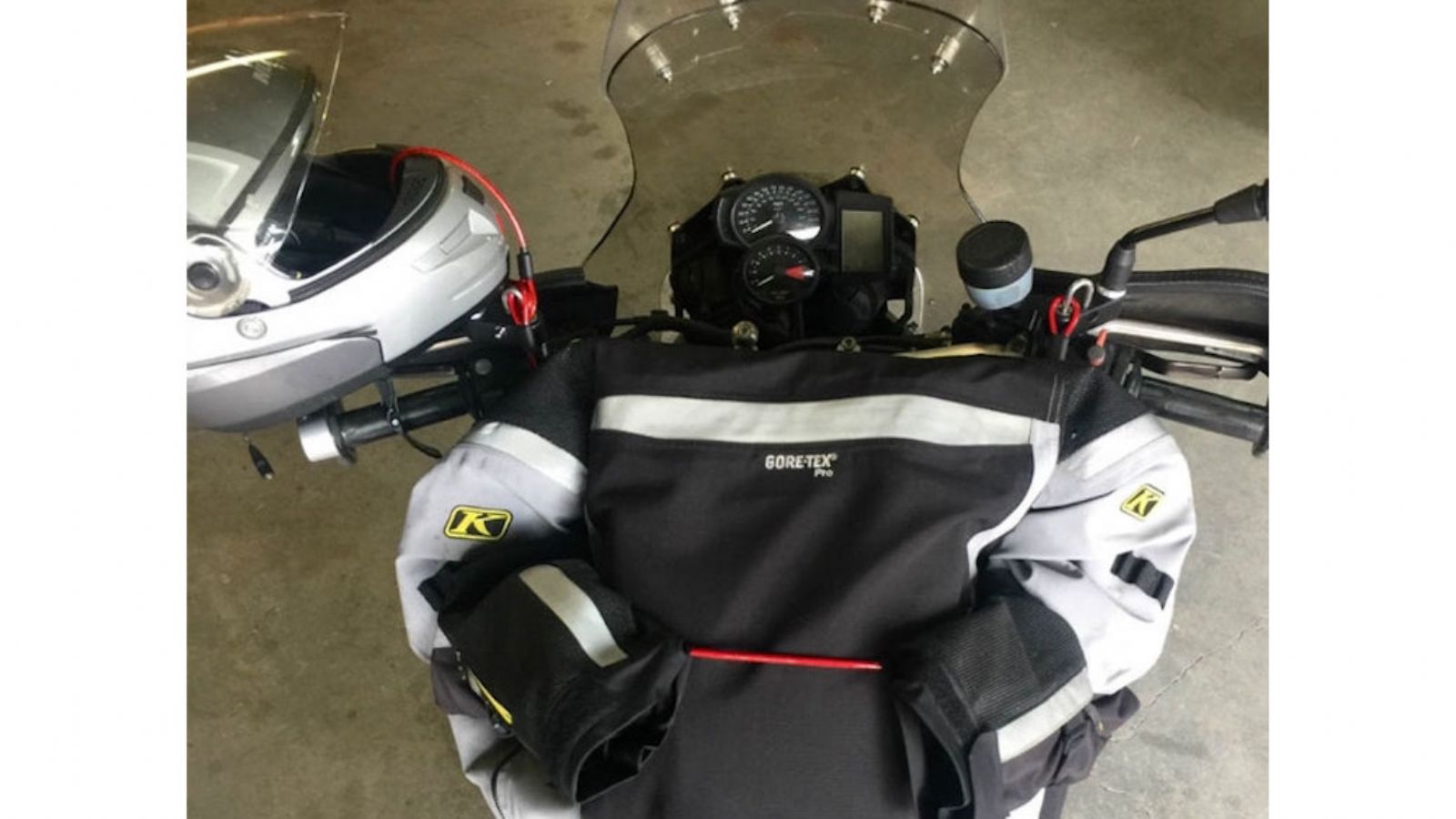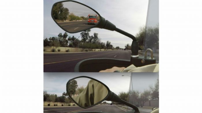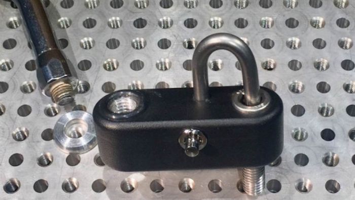 Για να λύσει όλα αυτά τα προβλήματα έφτιαξε το Mirror Lock, που είναι κατασκευασμένο από αλουμίνιο και βιδώνει στη βάση του καθρέπτη και λειτουργεί ως προέκταση που τον τοποθετεί πιο έξω και πάνω βελτιώνοντας την ορατότητα, ενώ τα Ο-rings που διαθέτει τον σταθεροποιούν και φιλτράρουν τους κραδασμούς. Επίσης, το Mirror Lock έχει και μικρή κλειδαριά σε σχήμα U, οπού μπορούν να περαστούν συρματόσχοινα ασφαλείας, που θα δένουν το κράνος, ενώ στη φωτογραφία βλέπουμε δεμένο και το μπουφάν, με το συρματόσχοινο να περνά μέσα από τα μανίκια.