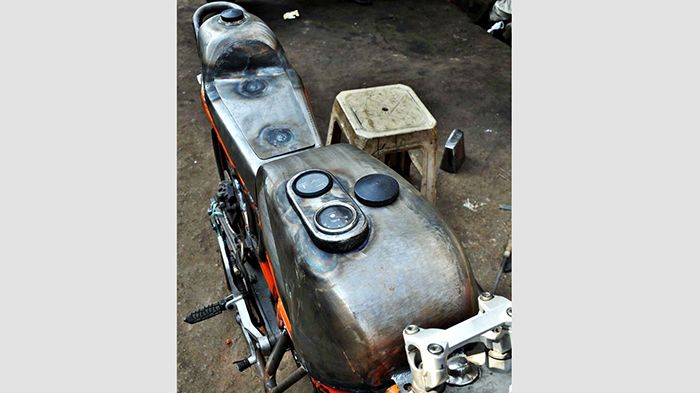 Ο ίδιος έφτιαξε στο χέρι όλα τα κοστούμια της μοτοσικλέτας, από το φέρινγκ δικής του σχεδίασης, ως το ρεζερβουάρ και την ουρά. Όλα έχουν φτιαχτεί από φύλλα αλουμινίου στο χέρι και για τον Aseem η δουλειά ήταν κάθε άλλο παρά εύκολη, καθώς δεν είχε ξαναδουλέψει ποτέ με μέταλλο, παρά μόνο με MDF για τα μοντέλα που κατασκεύαζε ως φοιτητής για διάφορες εργασίες.