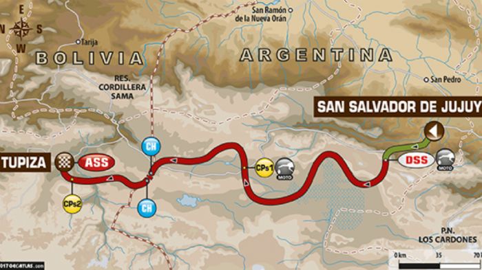 126 είναι οι αναβάτες που ξεκίνησαν σήμερα την ειδική και η απόσταση που έχουν να διανύσουν ανέρχεται στα 521 χλμ. Η διαδρομή ξεκινά από την πόλη του San Salvador de Jujuy και καταλήγει στην πόλη Tupiza της Βολιβίας.
