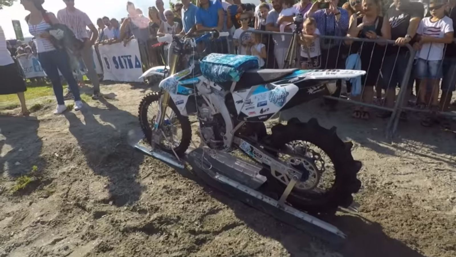 Ο Luca Colombo διένυσε μια απόσταση 5,5 χιλιομέτρων στη λίμνη Como, με ταχύτητα περίπου 75 χιλιομέτρων την ώρα, σημειώνοντας έτσι το πρώτο ρεκόρ απόστασης σε γλυκό νερό με μοτοσυκλέτα. Η motocross μοτοσυκλέτα των 450 κυβικών της Suzuki που χρησιμοποιήθηκε, είχε προετοιμαστεί κατάλληλα από τους μηχανικούς Carlo Gelmi και Giorgio Lumini, αλλά οι οδηγικές ικανότητες του Luca Colombo, ήταν καθοριστικές για την επιτυχία του εγχειρήματος.