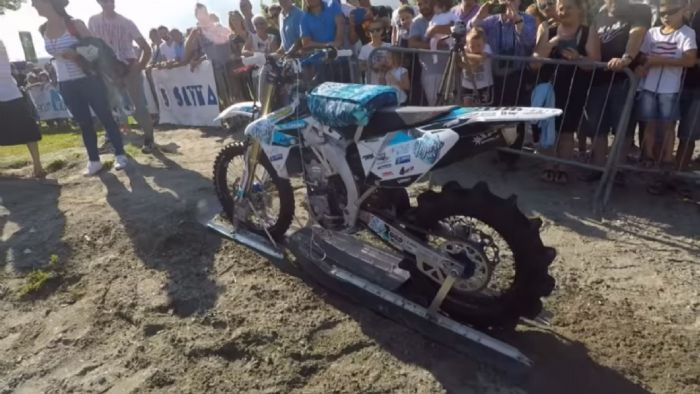 Η μοτοσυκλέτα διέθετε ειδικά υδροδυναμικά πτερύγια κάτω από τους τροχούς και την “κοιλιά” της, που παρείχαν την απαραίτητη άνωση και πίσω λάστιχο με “κουπιά” όμοια με αυτά που χρησιμοποιούνται στα ελαστικά για άμμο. Ήταν, επίσης, εξοπλισμένη με μια συσκευή που θα φούσκωνε σε περίπτωση απώλειας ισχύος και θα κρατούσε τη μοτοσυκλέτα στην επιφάνεια της βάθους 250 μέτρων λίμνης, αν κάτι πήγαινε στραβά.