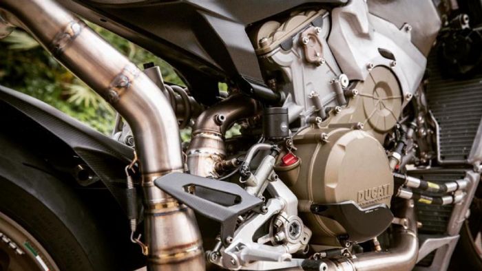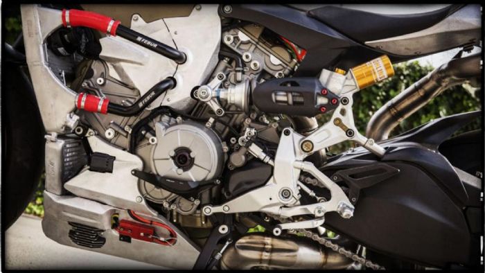 Το ψυγείο της μοτοσυκλέτας είναι ολοκαίνουργιο, από την Febur, όπως επίσης και η εξάτμιση, η οποία προέρχεται από την Akrapovic και φέρει διπλή απόληξη με «κοντά» τελικά. Είναι σίγουρο, ότι πολλοί φίλοι της Ducati Superleggera θα αντιδράσουν σε αυτή την μετατροπή. Δεν παύει όμως να είναι μοναδική!