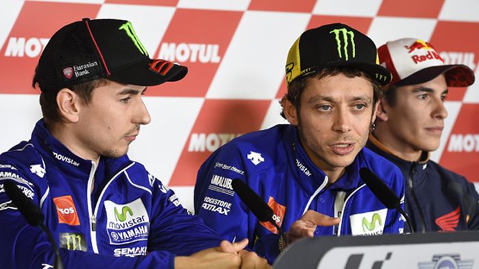 O Valentino εν μέσω των συμπληγάδων του, Lorenzo και Marquez.