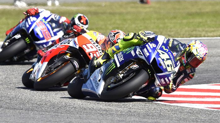 Σημειώστε πως ο Lorenzo ήταν ο μοναδικός αναβάτης από το γκρουπ των πρώτων που έτρεχε με σκληρό μπροστινό ελαστικό, ένα ρίσκο που θα του κόστιζε ακριβά. Ο Rossi πέρασε άμεσα τον Iannone, για να βρεθεί δεύτερος, ενώ το ίδιο έκανε και ο Marquez, περνώντας τρίτος, πίσω από τον γιατρό. Ο Lorenzo οδηγούσε την κούρσα, προσπαθώντας να ξεφύγει από τους διώκτες του, κάνοντας μια μικρή διαφορά στον δεύτερο γύρο, όμως η κατάσταση άλλαξε άρδην τη στιγμή που ο Marquez έκανε την κίνηση του, και προσπέρασε τον Rossi στην Tramonto. Από εκείνη τη στιγμή, ήταν λες και εμφανίστηκε ένας Rossi από τα παλιά, καθώς ο απίστευτος Ιταλός αμφισβήτησε εμφατικά τον Marquez, δείχνοντας μας πως υπάρχει ψωμί ακόμα στο γερόλυκο! Ο γιατρός απάντησε αστραπιαία στην προσπέραση του Marquez, καθώς βρέθηκε δίπλα στον Ισπανό στην έξοδο της στροφής, καταφέρνοντας να περάσει και πάλι μπροστά στην πίσω ευθεία. Η απόπειρα του «μαθητή» Marquez να προσπεράσει τον «δάσκαλο» Rossi επαναλήφθηκε ένα γύρο αργότερα, πάλι στην τέταρτη στροφή της πίστας, αλλά ο Rossi επανέλαβε και εκείνος την κίνηση του, περνώντας δεύτερος ξανά. Πανικός!
