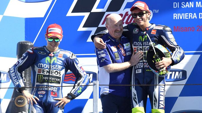 Ανέβασε το συγκινημένο μηχανικό του στο βάθρο ο Rossi, καθώς ο Galbusera είναι από τους πρωτεργάτες του comeback του Ιταλού.