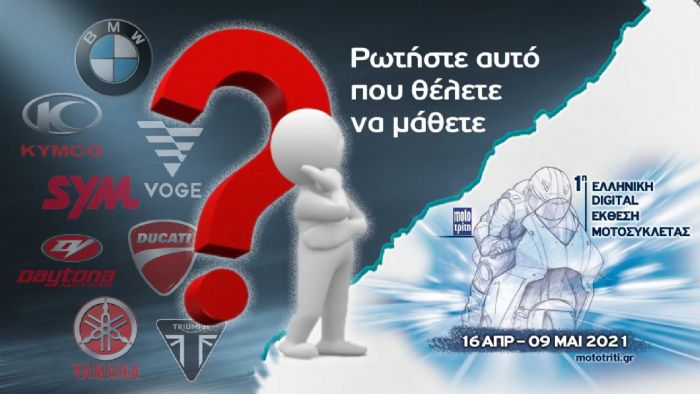 Το Moto Τρίτη, που άνοιξε τις πόρτες της πρώτης Ελληνικής Digital έκθεσης μοτοσυκλέτας στην Ελλάδα, φέρνει τους αναβάτες πιο κοντά στο νέο τους δίκυκλο από ποτέ. Τώρα, με την νέα μας πρωτοβουλία, σβήνουμε όλα σας τα ερωτηματικά προωθώντας τις ερωτήσεις σας, απευθείας στους ειδικούς.