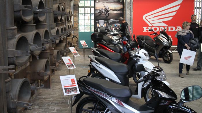 To περίπτερο της Honda βρισκόταν στο πιο κλασικής ίσως αισθητικής κτίριο του χώρου. Ωστόσο, ανάμεσα στα μοντέλα της, η τεχνολογία έκανε έντονη την παρουσία της.