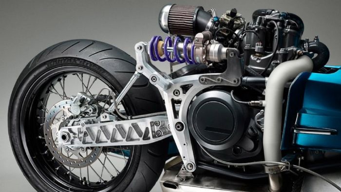 O κινητήρας έχει κρυφτεί επιμελώς κάτω από το fairing της κατασκευής, ενώ οι μηχανικές μεταβολές δεν σταματούν εκεί. Το scooter έχει αποκτήσει τροχούς 17 ιντσών, ανεστραμμένο πηρούνι και φρένα Brembo!