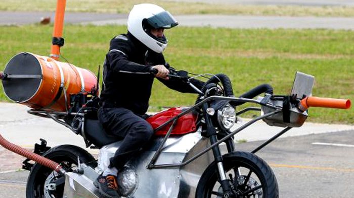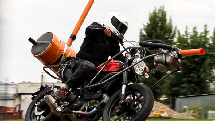 Το βαρέλι που έχει δεθεί πάνω στην τεράστια και αφύσικη πίσω σχάρα παίζει το ρόλο του τελικού της εξάτμισης. Αν κρίνουμε από το μέγεθός του, μόνο ένας ψίθυρος θα πρέπει να απελευθερώνεται από το πάνω μέρος του πορτοκαλί σωλήνα που βρίσκεται πολύ μακριά από την υπόλοιπη μοτοσικλέτα. Μακριά και έξω από τη μοτοσικλέτα έχει τοποθετηθεί και το κουτί του φίλτρου αέρα ώστε οι τεχνικοί να μπορέσουν να ελέγξουν την ποιότητα των μηχανικών θορύβων του μοτέρ.