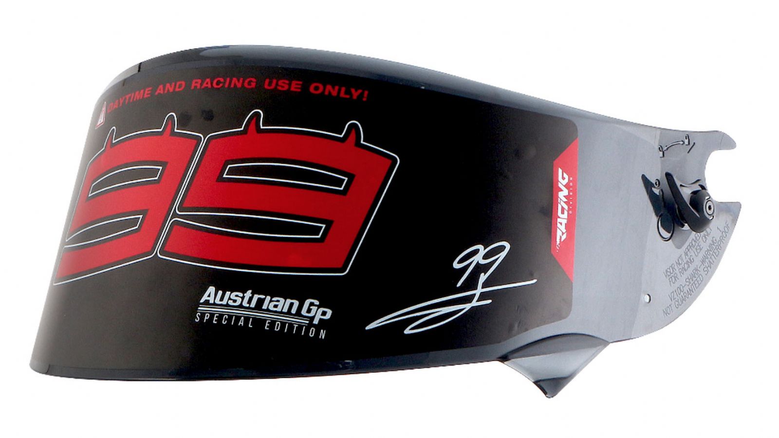 Το Race-R Pro Replica Lorenzo Austrian GP Mat συνδυάζει το σχέδιο «devil spirit» με όμορφο κόκκινο ματ χρώμα. Στην πολυτελή συσκευασία του περιλαμβάνονται ακόμα γυαλιά ηλίου με τη θήκη τους, αυτοκόλλητα, φιμέ ζελατίνα και πουγκί μεταφοράς για το κράνος.