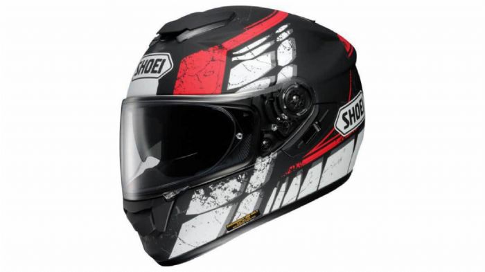 Kράνος full face της Shoei, GT-Air, ειδικού σχεδιασμού με κορυφαία αεροδυναμικά χαρακτηριστικά.