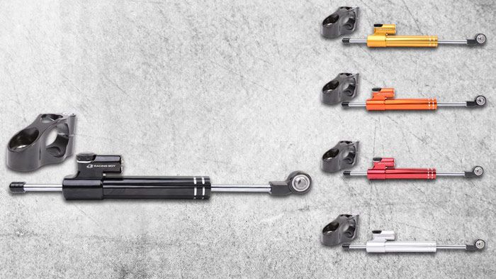Τα αμορτισέρ τιμονιού της Racing Boy έρχονται με διαδρομές 80, 110 και 130 χλστ., ώστε να ταιριάζουν σε μια μεγάλη ποικιλία μοτοσικλετών. Τα εν λόγω αμορτισέρ είναι ρυθμιζόμενα ως προς την σκληρότητά τους για να προσαρμόζονται εύκολα σε κάθε πεδίο χρήσης της μοτοσικλέτας (πόλη-επαρχιακός-track day). Μειώνουν σημαντικά τις ταλαντώσεις στη γρήγορη οδήγηση αλλά και στο πέρασμα πάνω από κακοτεχνίες του οδοστρώματος (π.χ. σαμαράκια), ενώ βρίσκεστε υπό κλίση ή κινείστε με υψηλές ταχύτητες. Διαθέσιμο σε επιλεγμένα καταστήματα σε όλη την Ελλάδα.